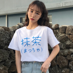 春季女装新款日系港风字母印花短袖休闲t恤女学生白色休闲上衣潮