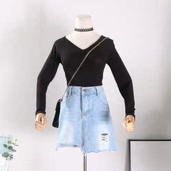V领长袖百搭打底衫潮女2018 春新品新款韩版显瘦修身t恤 服装批发