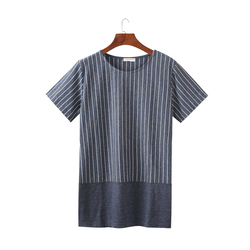 女士文艺宽松大码条纹打底衫夏新款短袖百搭休闲T恤