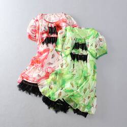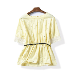 37218 夏季新款女韩版收腰修身甜美蕾丝拼接印花五分袖衬衫9月8