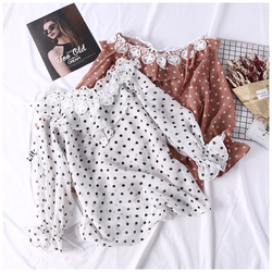 一字领夏季新款女装波点印花喇叭袖雪纺七分袖休闲T恤GY
