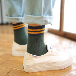 进口韩国袜子商务休闲男士潮男袜纯色英伦森系螺纹竖纹棉袜短筒袜