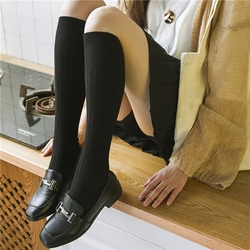 夏季女士小腿及膝袜日系高筒袜日系秋季纯棉长腿袜纯色半截袜子女
