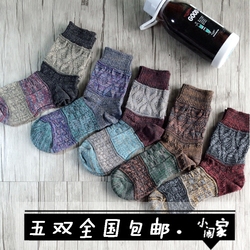 长袜男纯棉透气秋冬民族风粗线袜子复古运动长筒袜防臭吸汗男棉袜