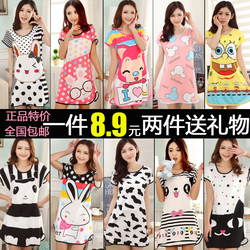 韩版夏季短袖甜美睡裙宽松大码中长款卡通女士性感睡衣夏天家居服