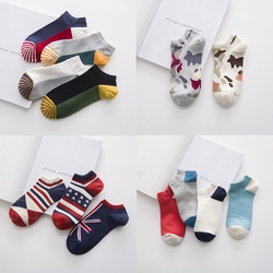 @袜集营 春夏日系全棉国旗迷彩男短袜 英伦复古个性浅口低帮船袜