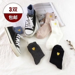 秋冬韩版原宿少女心学生百搭棉袜爱心纯色中筒袜学院风长袜子运动