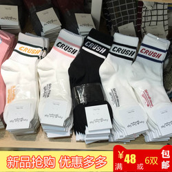 韩国进口秋冬袜子纯棉女袜中筒字母糖果拼色ggorangnae学生袜子