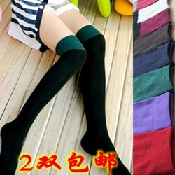 春秋款女士全棉拼接中长筒丝袜 高统袜 靴长袜 双色过膝棉袜批