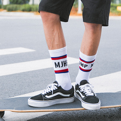 袜子男秋季新品男士中筒袜街头高筒袜数字条纹滑板运动袜韩版潮袜