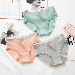 时尚字母边中腰螺纹舒适轻薄少女纯棉柔软亲肤三角女士内裤批發