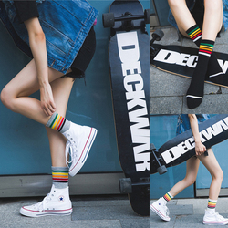 足本记 韩国学院风全棉彩虹条纹情侣袜堆堆袜运动袜中筒男女袜子