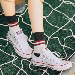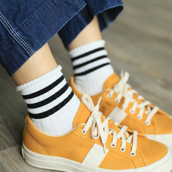 春秋纯色文艺纯棉运动条纹男女中筒袜 日韩百搭二条杠情侣短袜子
