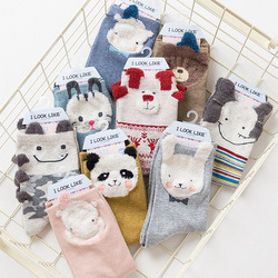 i look like2018秋冬立体女袜纯棉女士中筒袜 全棉动物卡通棉袜子