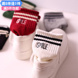 可爱韩国笑脸袜子全棉学生袜男女情侣款中筒袜条纹字母包邮