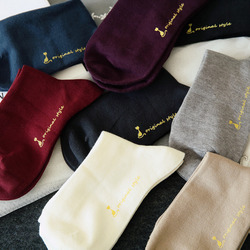 复古纯色烫金字母小猫 纯色针织短袜 精梳棉女士短袜 8色