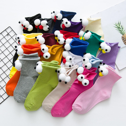 3d立体大眼睛袜子抖音短袜卡通薄款春秋韩版中筒袜学院风网红潮袜