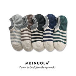 米吉诺拉夏季条纹全棉男士船袜日系潮流运动拼色低帮浅口短袜子