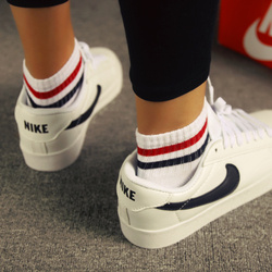韩国新款原宿字母条纹刺绣学院运动滑板全棉黑白袜子女中筒潮袜夏