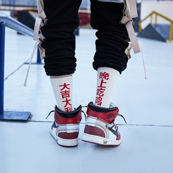 长袜男潮大吉大利今晚吃鸡高帮欧美街头运动滑板个性黑暗系袜子男