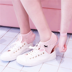 足本记 春夏秋薄款纯棉纯色甜美蝴蝶结日系松口短筒学院风女袜子