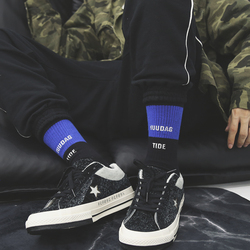 潮牌INS街头原宿风撞色拼接字母男女中筒袜子长袜棉运动滑板袜子