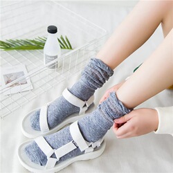 足本记 新款堆堆袜韩国泡泡口长筒袜镂空纯色女袜薄 纯棉袜子