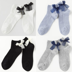 袜品推荐 甜美可薄纱爱蝴蝶结点缀螺纹舒适纯色棉质短袜袜子女