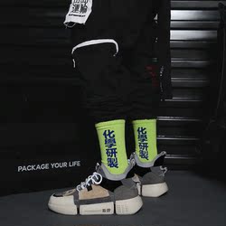 INS潮牌原宿学院风街头嘻哈滑板荧光中筒袜子棉男女运动中文长袜