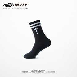 韩国chic原宿日系十字架潮牌纯色中筒棉袜子 男女百搭长袜子
