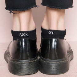 足下工作室ins爆款fuck off英文字母刺绣短袜子纯棉薄款中筒袜