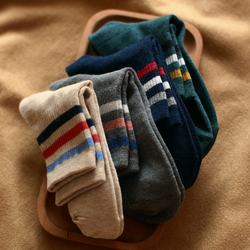 韩国ulzzang原宿条纹字母个性运动中筒棉袜子二杠长袜 男女潮流袜