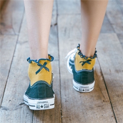 足本记 日韩系蝴蝶结银葱超薄透气薄棉袜泡泡边甜美学院少女袜子
