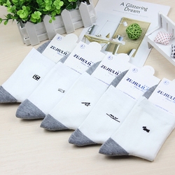 5双装袜子男士纯棉中筒袜白色灰底透气网眼四季运动休闲短款男袜