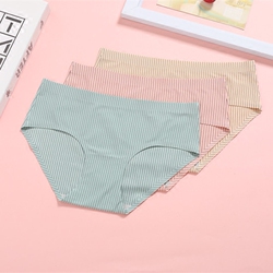 5条包邮 一片式冰丝无痕内裤女士竖条纹低腰纯棉内档包臀三角裤头