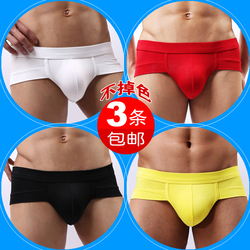 3条包邮夏季薄款男士U凸三角内裤 红黑白灰黄色莫代尔透气底裤