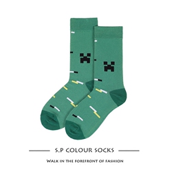 素派创意我的世界长袜子男个性绿色怪物彩色高帮袜全棉休闲袜女