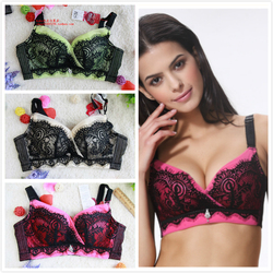 蕾丝大码无钢圈文胸 聚拢调整型收副乳后五排扣薄杯胖MM内衣胸罩