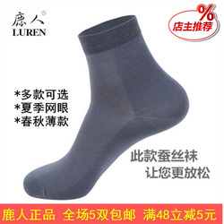 鹿人袜子男春夏季薄款网眼棉袜桑蚕丝莫代尔男袜中短筒黑防臭夏天