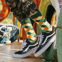 袜子男女春季情侣袜纯棉中筒袜彩色菱格个性潮袜欧美街头滑板长袜