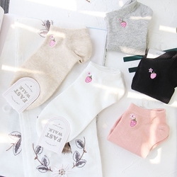 春夏季薄款百搭基础款学生简约可爱少女草莓刺绣船袜纯色女短袜子