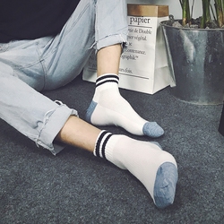 夏季薄款脚背网孔拼接蓝色补丁黑色双杠男士潮袜吸汗透气耐臭袜子