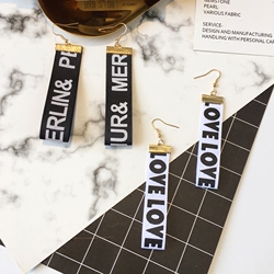 欧美港风街头个性黑白英文字母love布条耳环耳饰韩版简约潮人耳钩