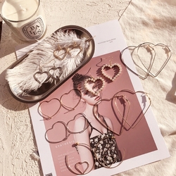 包邮 爱心几何简约桃心金属镶嵌珍珠韩国韩版百搭唯美耳环耳饰女