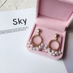 包邮韩版气质优雅珍珠串金属几何圆形麻花时尚创意耳环耳饰耳坠女