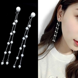 甜美气质长款珍珠前后式耳环简约串珠流苏夸张耳坠女式时尚装饰品