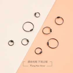 【巷南】925纯银绕丝黑耳圈酷girl百搭耳钉简约耳扣欧美男女款