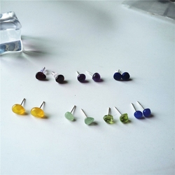 25包邮 定制款 天然石榴石绿松紫水晶玉青金橄榄石925纯银耳钉