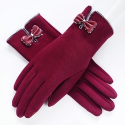 韩版蝴蝶结保暖触屏手套女冬加厚全棉手套加绒骑行春秋冬学生纯棉
