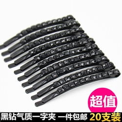 盘发黑钻一字夹韩国发夹饰品边夹刘海小卡子夹子黑色镶钻头饰发卡